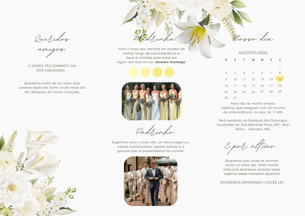 Esperamos, com o coração cheio de amor e gratidão, nossos queridos familiares e amigos para celebrarmos juntos o amor e a união que Deus nos concedeu.